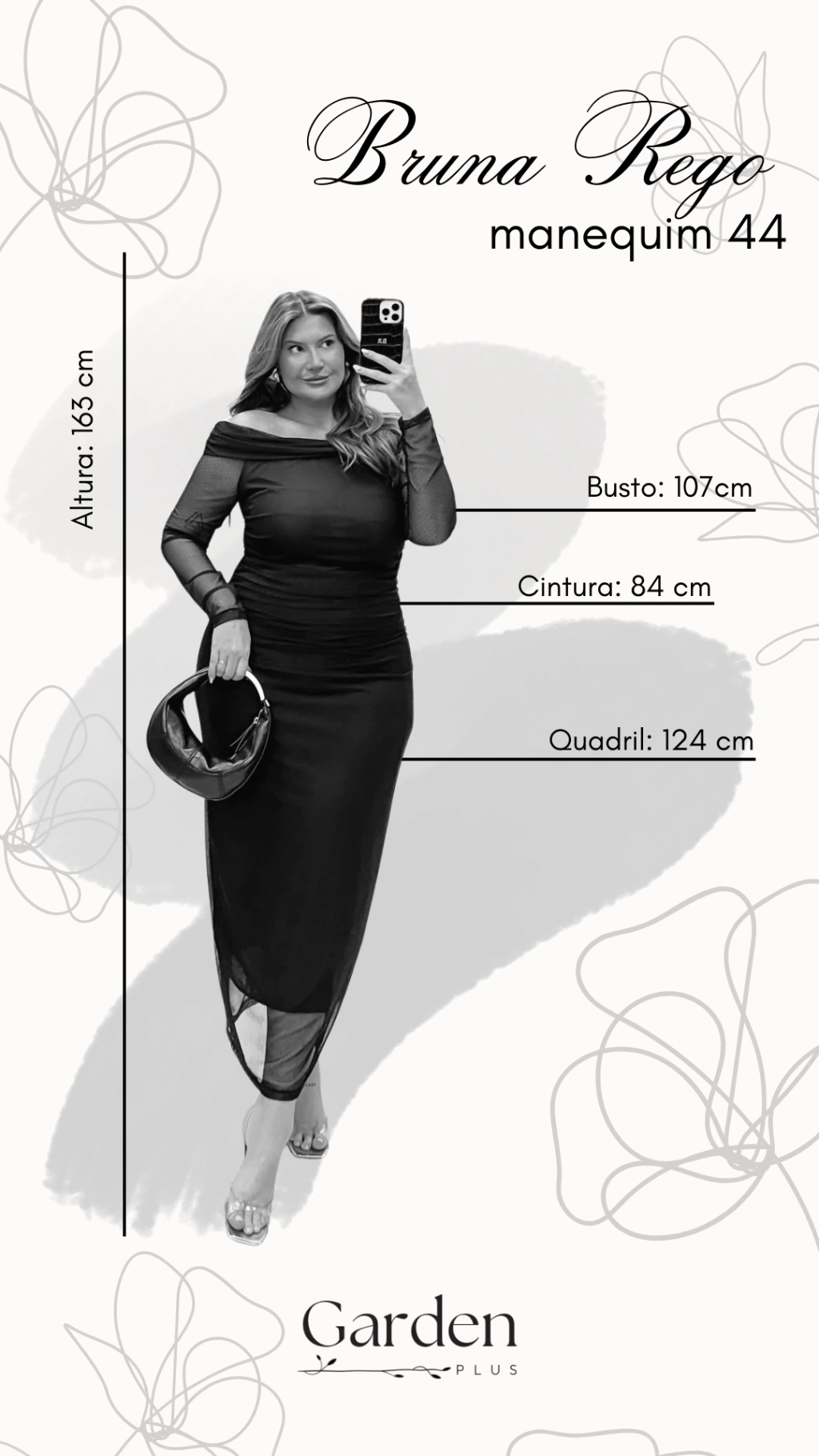 Vestido plus size com estampa exclusiva em tecido tecnológico: um misto de fibras naturais com componentes que ajudam a peça não amassar com facilidade.